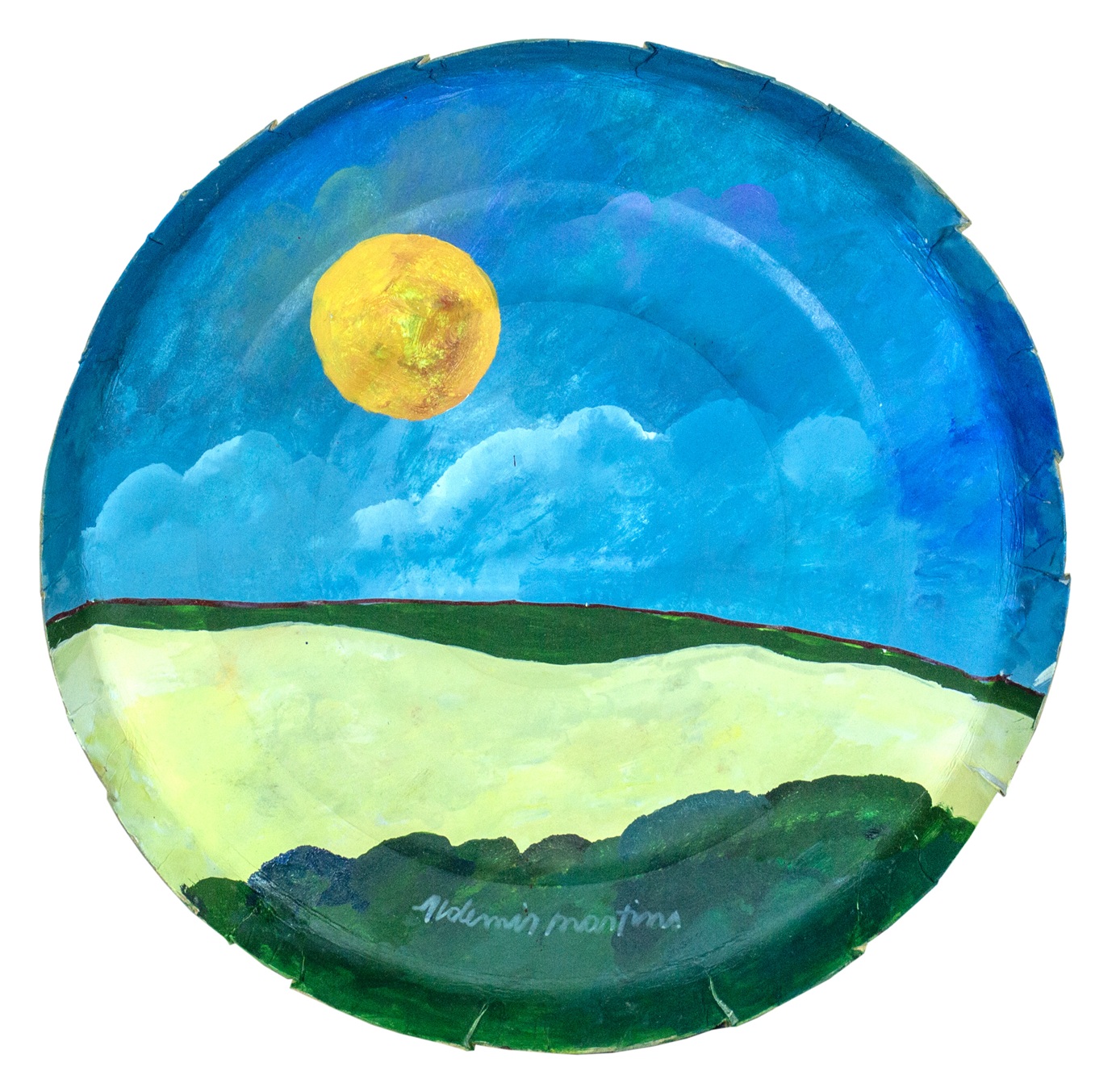 PaisagemAcrílica s/ papel cartão, 38 cm de diâmetro, ass. centro.Acompanha certificado emitido por Pedro Martins
