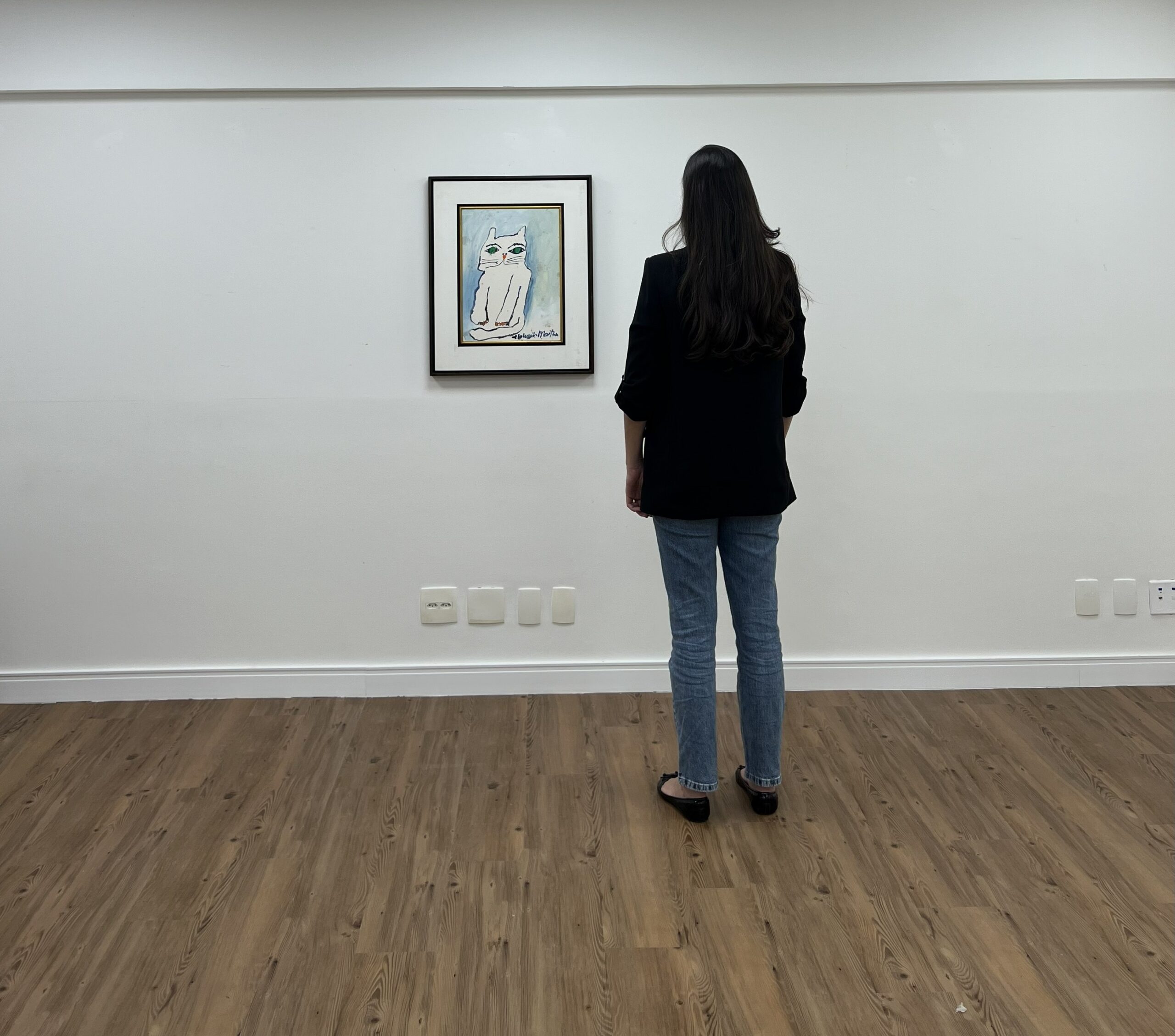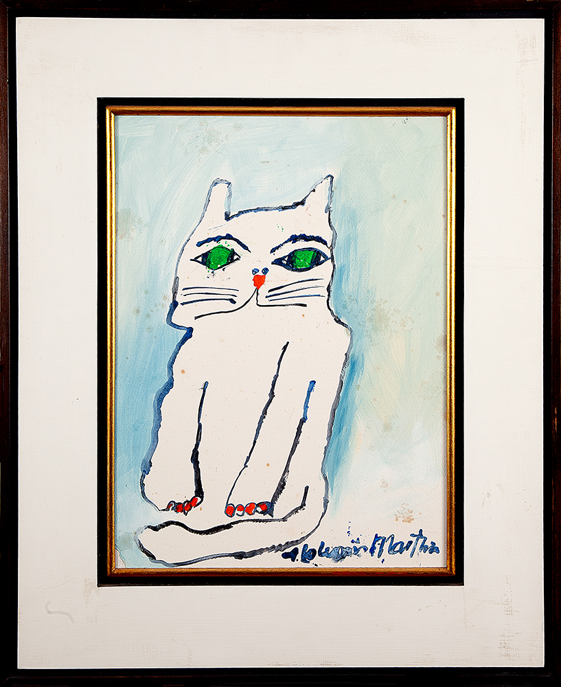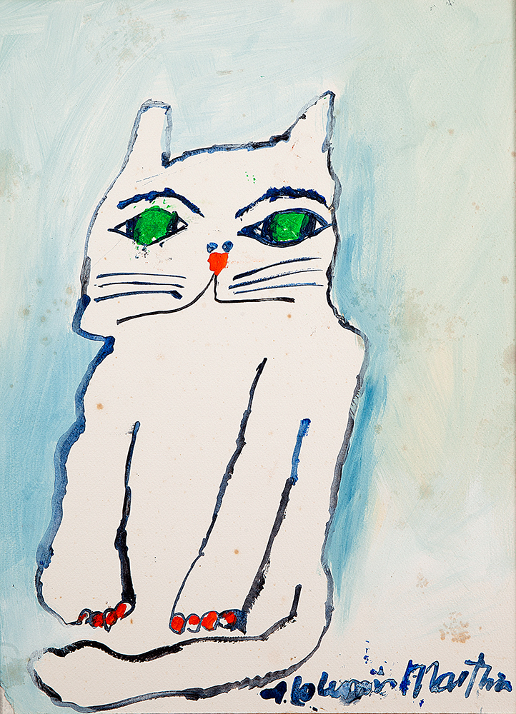GatoAcrílica s/ cartão montada em madeira, 46 x 35 cm, ass. inferior direito,dat. 2002. Acompanha certificado do artista