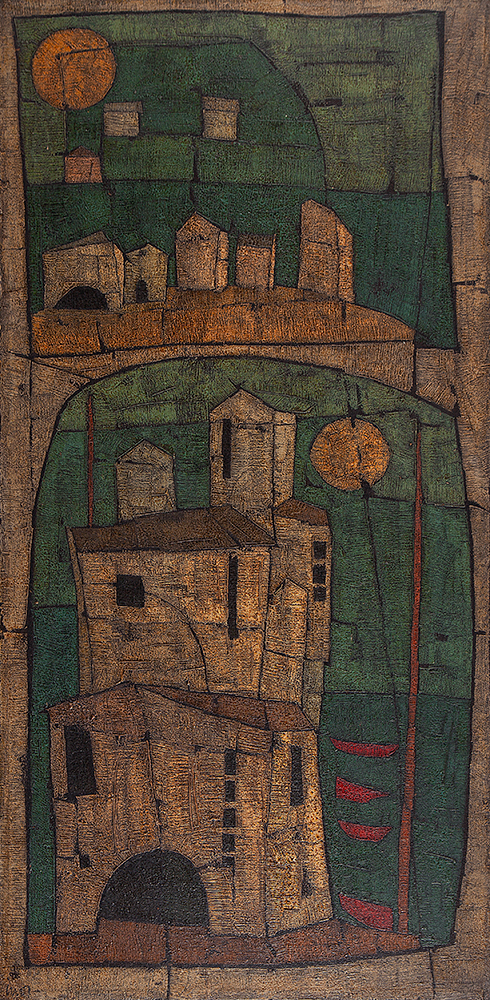 Óleo s/ tela, 130 x 65 cm, ass. inferior esquerdo, déc. 60