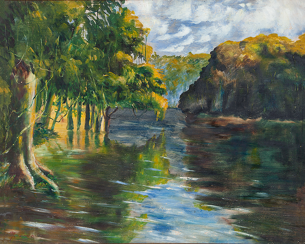 Óleo s/ laminado melamínico, 50 x 61 cm, ass. inferior esquerdo,