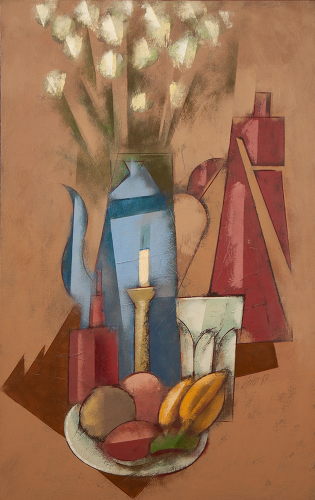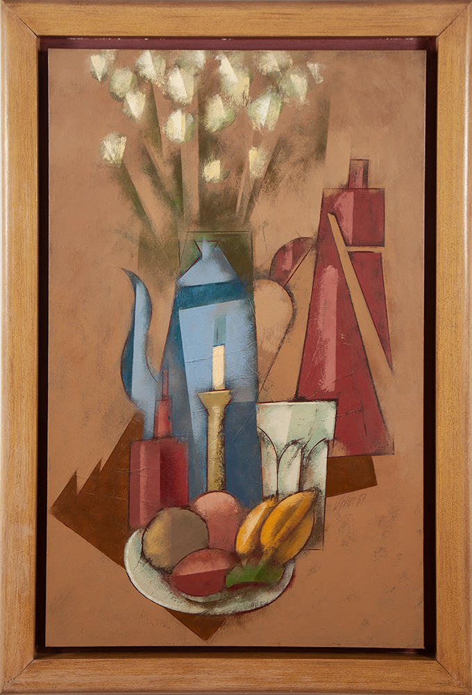Vinil e colagem encerado s/ tela montado em madeira, 100 x 65 cm,