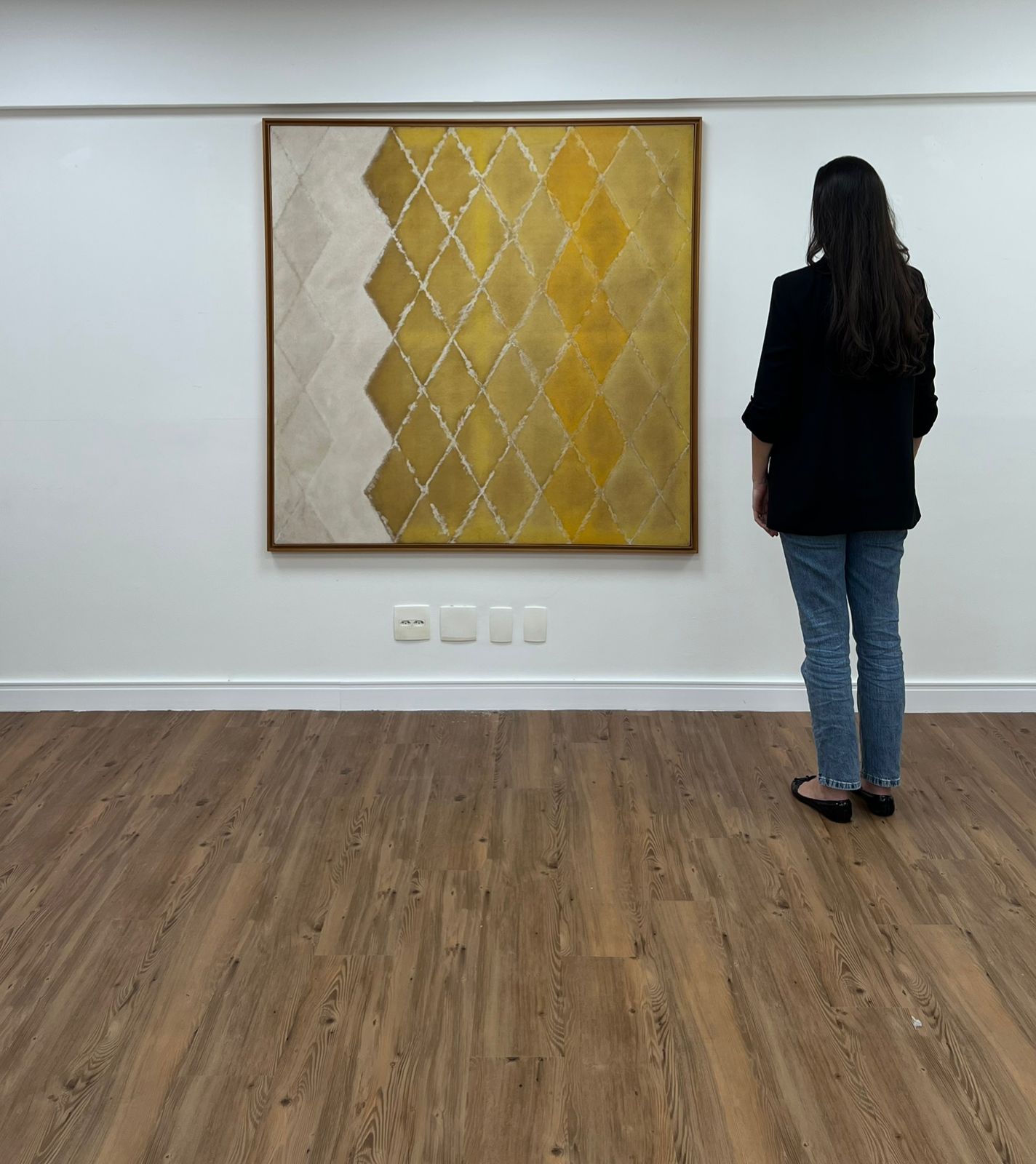Série GradesAcrílica e vinil s/ lona crua, 140 x 140 cm, ass. verso,dat. 1982. Reproduzido no livro do artista, pág. 71